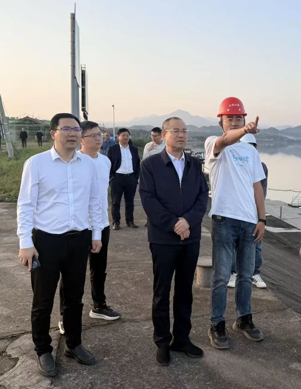 ▲陈礼洋查看湘江石鼓区保护圈松木经开区段建设工程